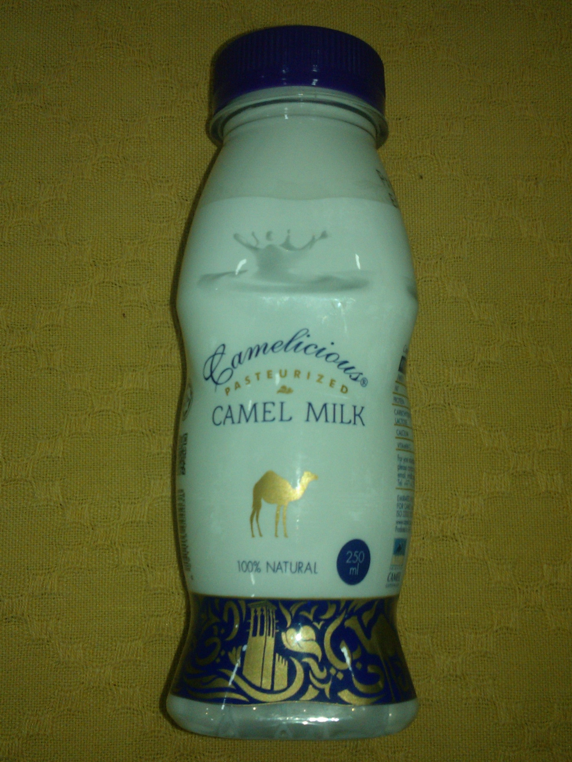 Nun muss ich noch etwas berichten. Habe neulich beim Einkaufen im Supermarkt Kamelmilch entdeckt. Das fand ich ja spannend! Trotz des relativ hohen Preises für dieses kleine Fläschchen, musste ich das doch kaufen und wir haben probiert. Schmeckt ähnlich wie ganz frische Milch, direkt aus dem Kuhstall. Probieren war o.k., über den Rest haben sich die Katzen hergemacht.