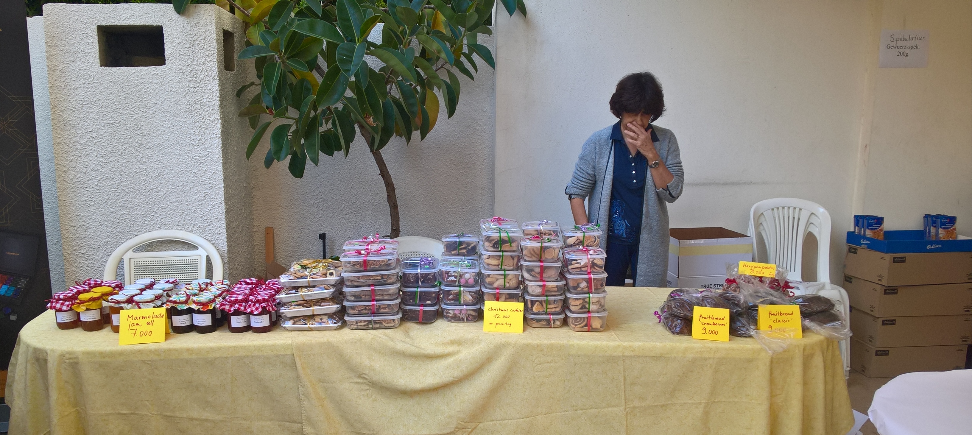 Zwischendrin wurden die Marmeladen und Plätzchen der Gemeinde verkauft und daneben die Weihnachtsbackwaren, die dafür extra aus Deutschland eingeflogen wurden.
