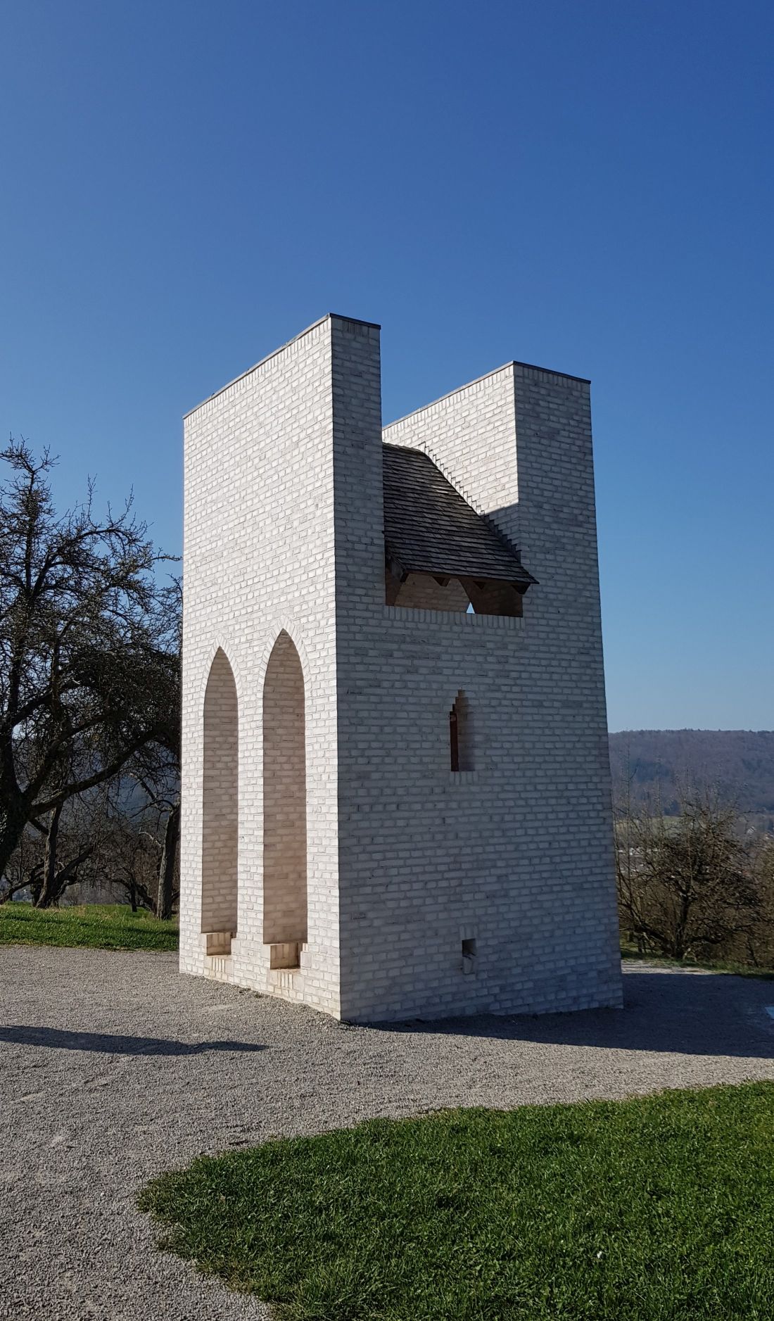 Nach meinem Fußmarsch zurück zum Auto wo Jogi derweil mit einem Schützenkollegen fachsimpelte, ging die Fahrt weiter nach Schorndorf, wo inmitten der Weinberge das „Prisma“ steht. Leider war keine Infotafel vorhanden, daher der Text aus der Website hier reinkopiert: